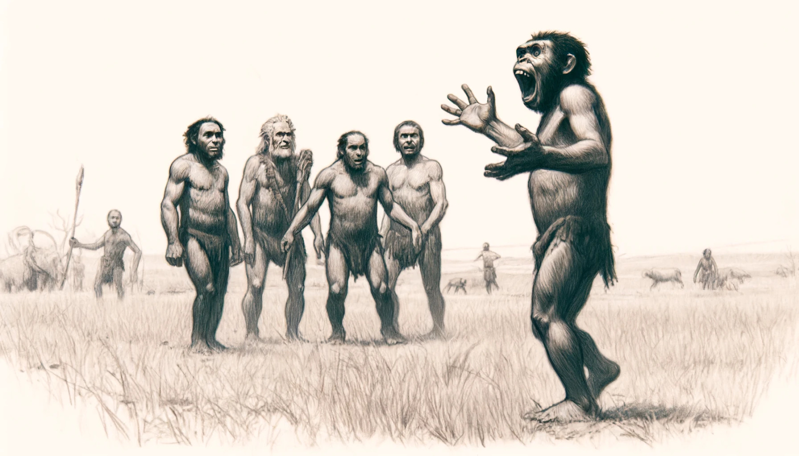 Every theory on how the human brain evolved is some kind of adaptation to the grassland. We relied more and more on bipedalism to navigate an open plain, which freed our hands to carry food, build tools, throw spears, and upgrade our thumbs. These tools—paired with social coordination—let small packs hunt bigger and bigger mammals, which required the invention of fire to eat meat, which led to more calorie-dense and nutrient-rich food.